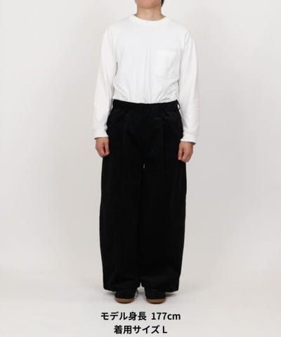 ●クラシックなコーデュロイ素材に、穿き心地の良さを追求したイージー仕様のワイドパンツ。ウエストはゴムとドローコードで調節可能なので、リラックスして着用いただけます。