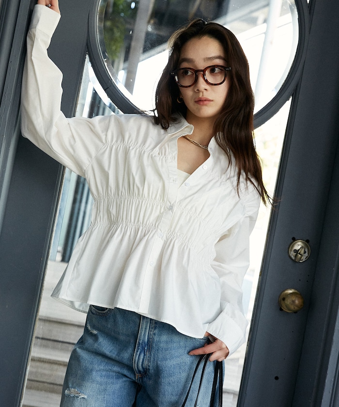 立体的なシャーリングデザインが目を惹く、1枚で着映える主役級ブラウス