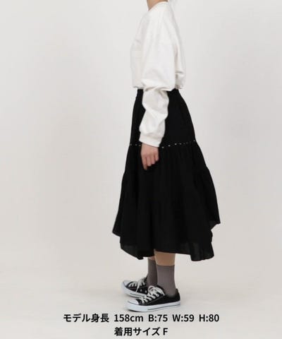 エッジの効いたスタッズディテールが魅力のアシメスカート