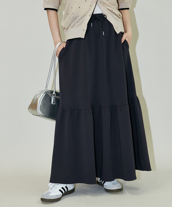 きれい見えとリラックス感を両立したポンチ素材のティアードスカート