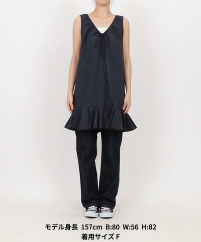 ギャザーと裾フリルがポイントの、軽やかに着映えるミニワンピース