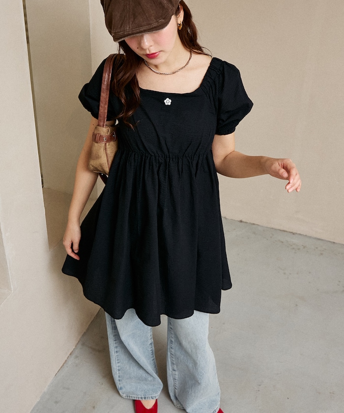 ●スクエアネックとオフショルダーの2WAY仕様で着回せるミニワンピ