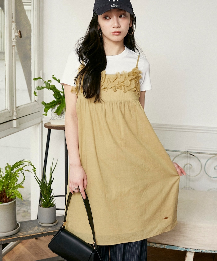 ヴィンテージライクなデザインが目を引くキャミワンピース