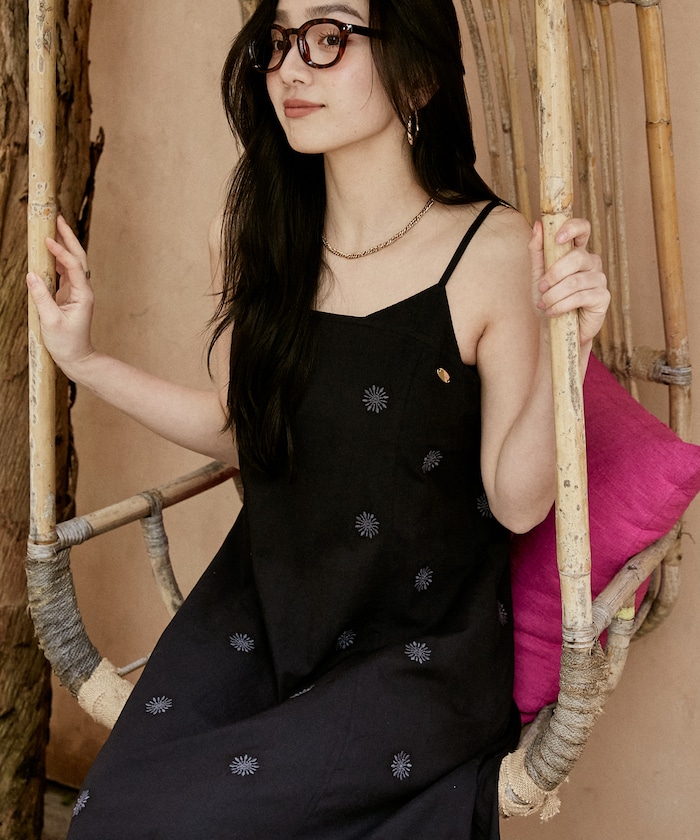 ナチュラルな風合いと刺繍が映えるロングキャミワンピース