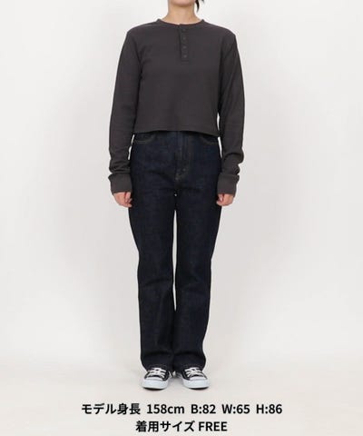 表情のあるライトワッフル素材と、程よく抜け感のあるヘンリーネックデザインがポイントのロングスリーブTシャツ