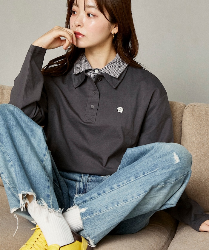 二重襟のレイヤードディテールに、マリクワのアイコンが映えるポロトップス