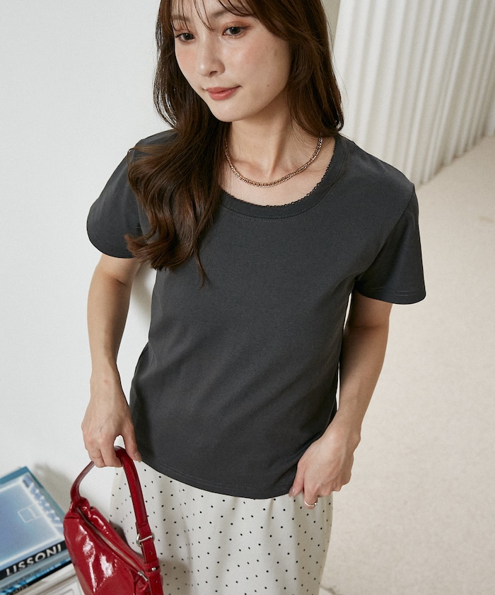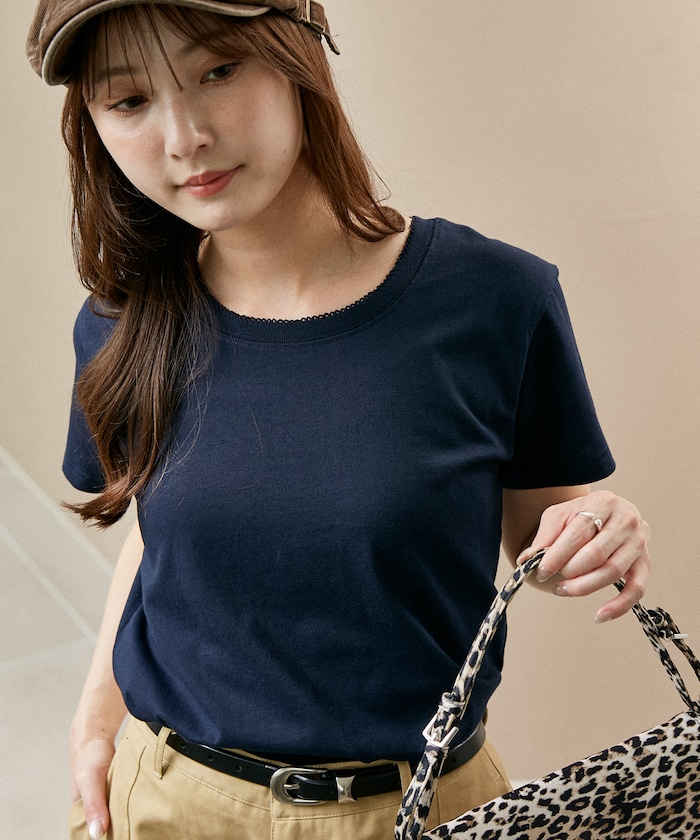 さりげないピコレースがポイントの、シンプルで着回し力抜群なTシャツ