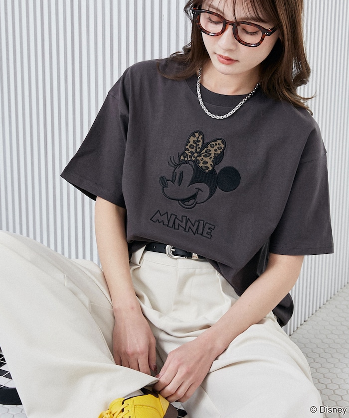 ●「ミニーマウス」のフェイスモチーフを、刺繍×レオパード柄で大人っぽく落とし込んだデザイン