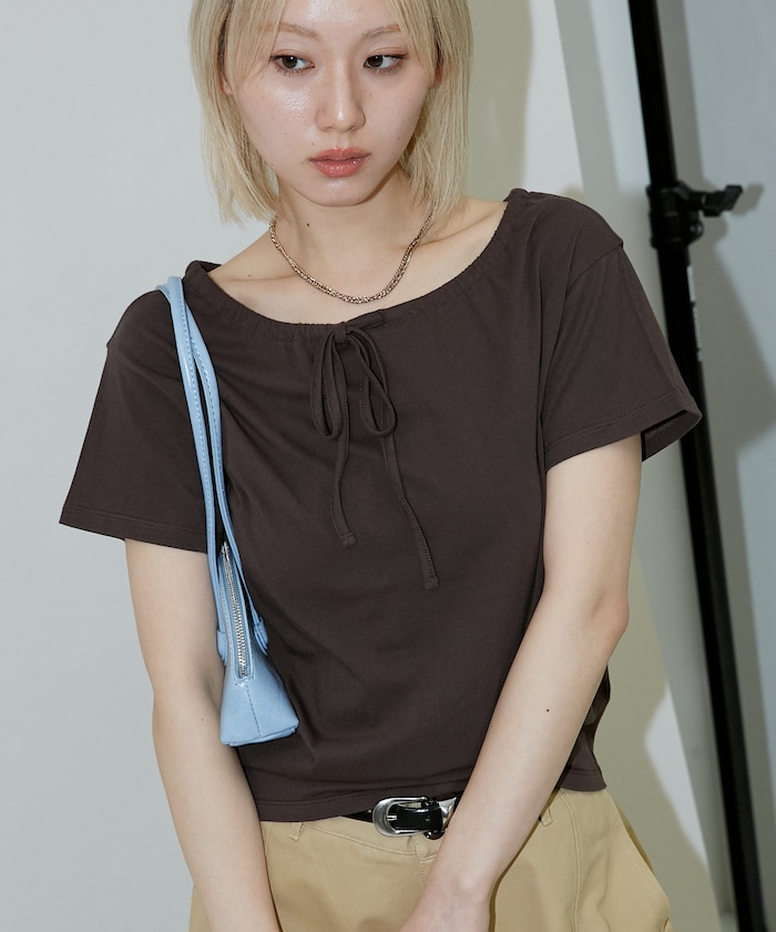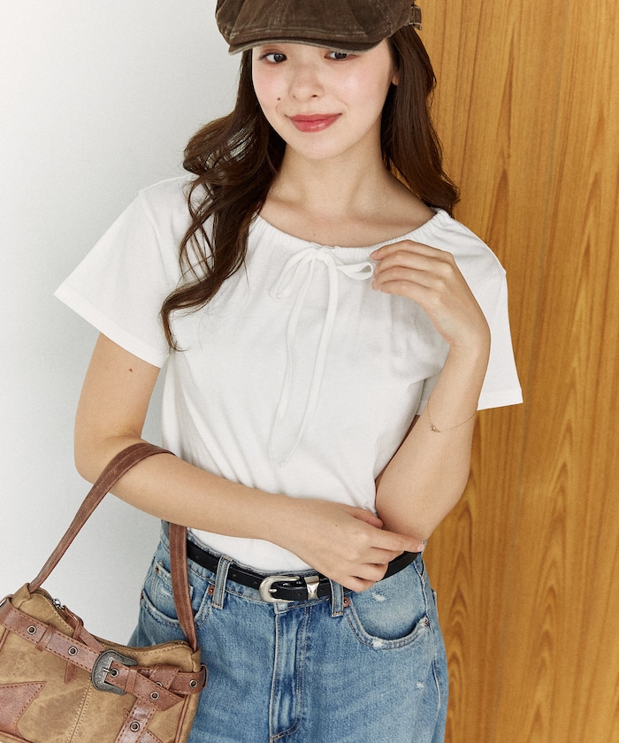 ●フロントのドローストリングリボンがポイントのデザインTEE