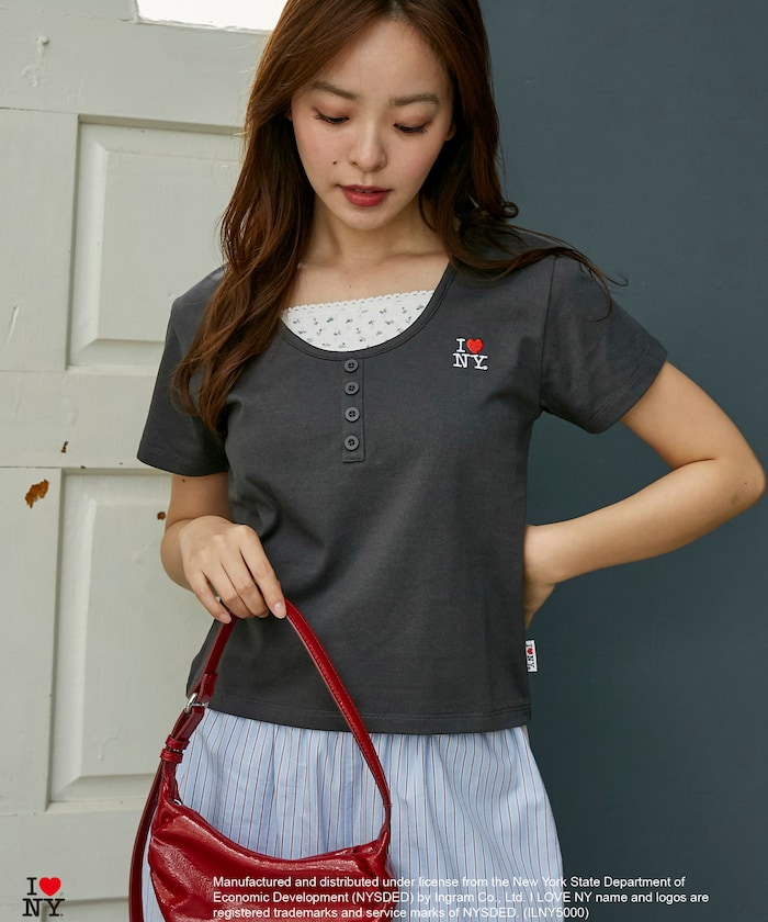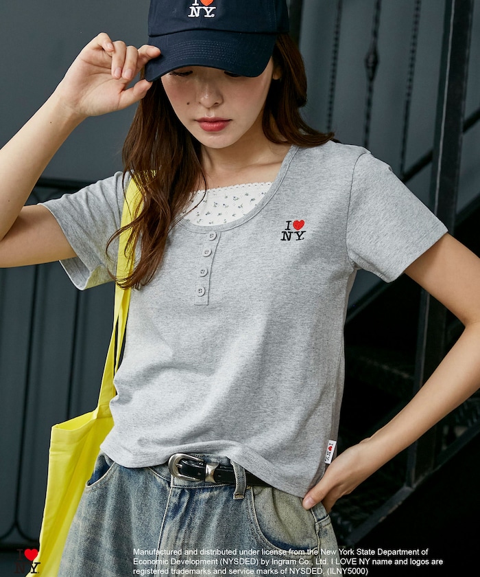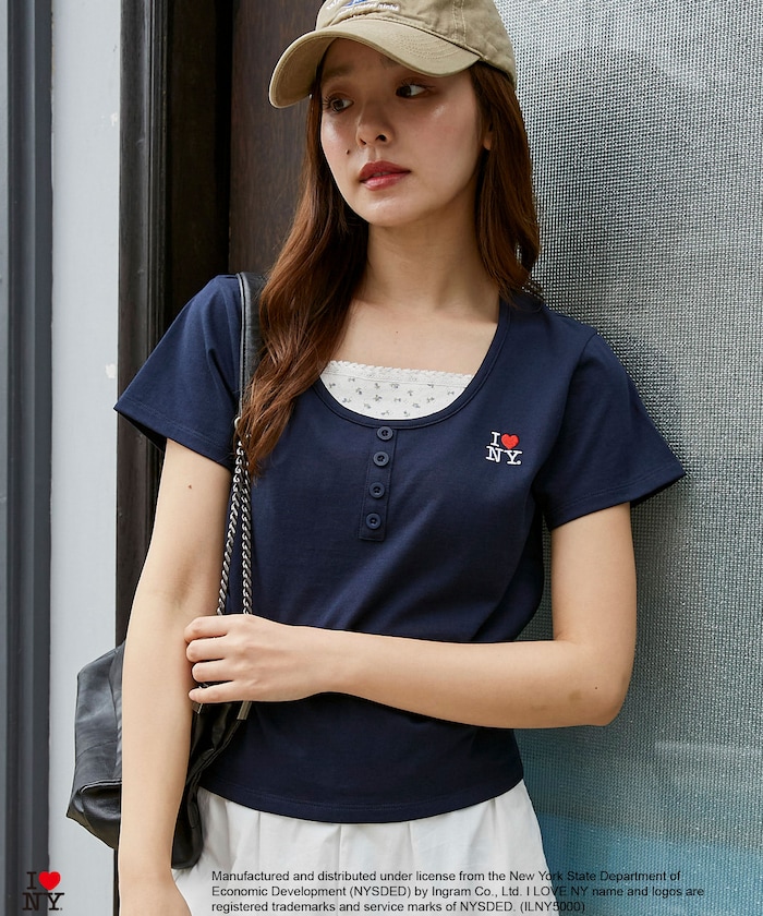 3223220800629:ILOVENY 花柄レイヤード風TEE