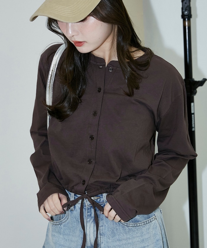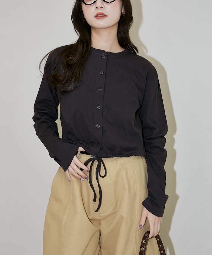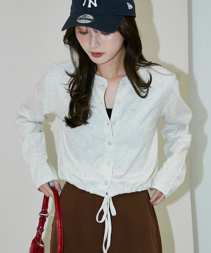 コンパクトな丈感とドロストディテールがポイントになった、軽やかに羽織れるカーディガン