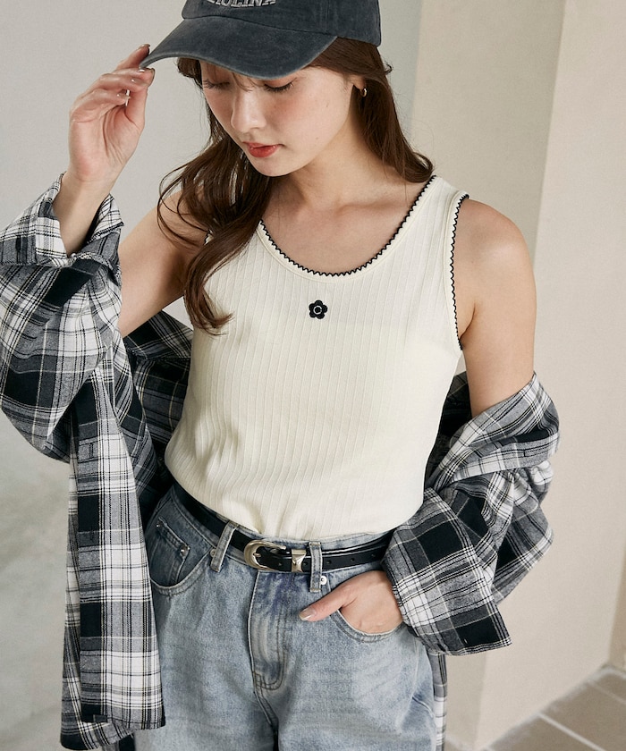 ●ピコレースのトリミングが女心をくすぐるタンクトップ