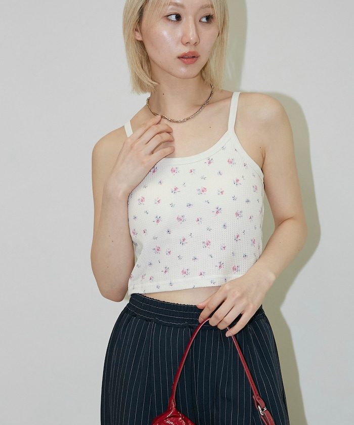 3226424800005:ワッフルフラワークロップドカップ付きキャミソール