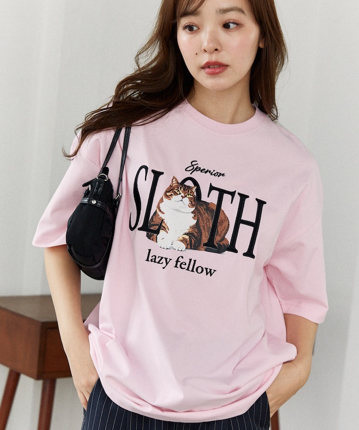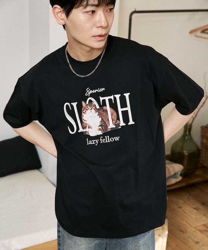 ●フロントには「SLOTH」のロゴと、くつろぐ猫モチーフを組み合わせたデザインを配置