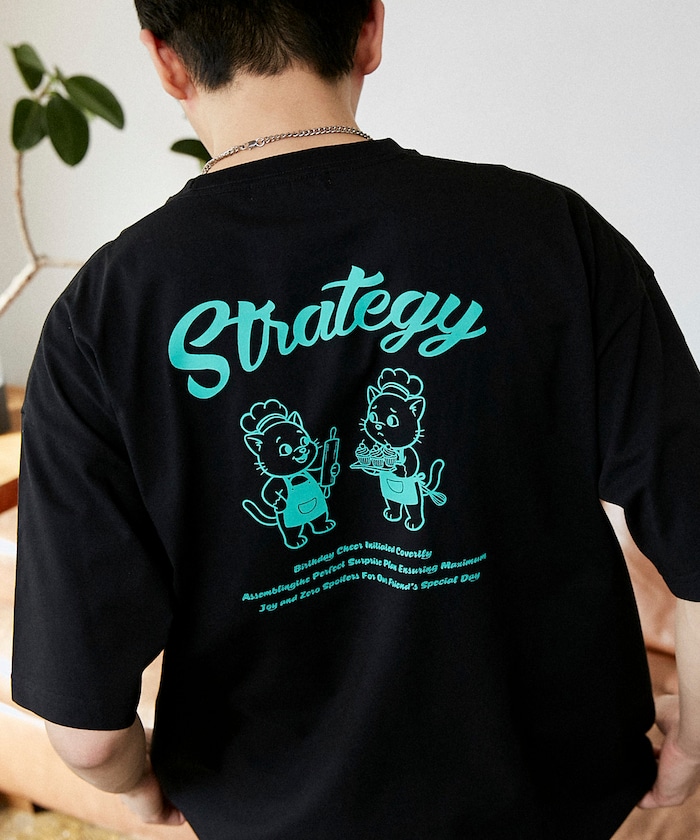 ●バックには「Strategy」のロゴと、コック帽をかぶった猫たちのグラフィックを配置