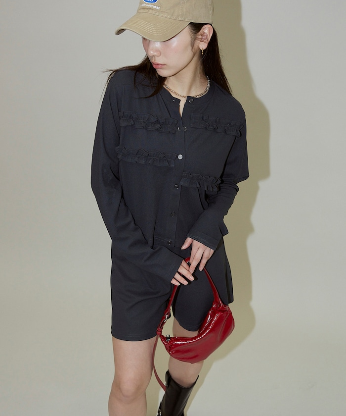 セットアップで着用すれば、フリルデザインを主役にしたフェミニン×モードなスタイルが完成。
