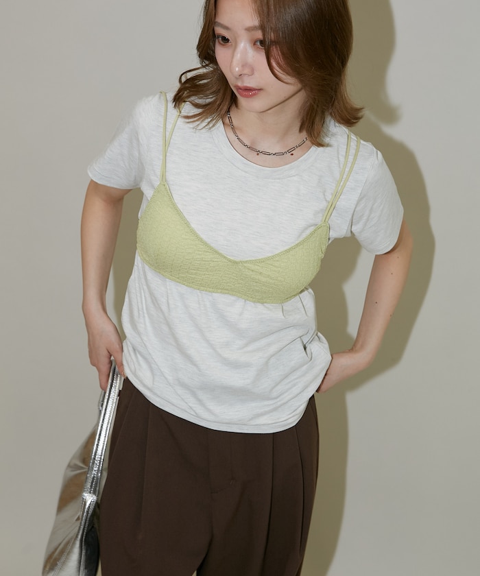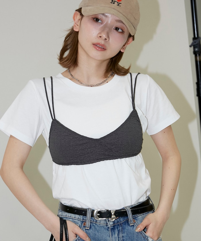 ●コンパクトなチビブラとTシャツがセットになったレイヤードアイテム