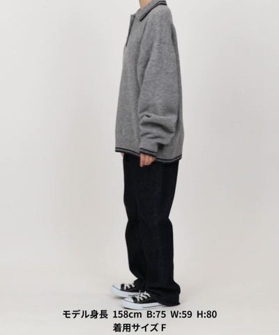 襟元と袖口のラインがアクセント。大人カジュアルに映えるポロニット
