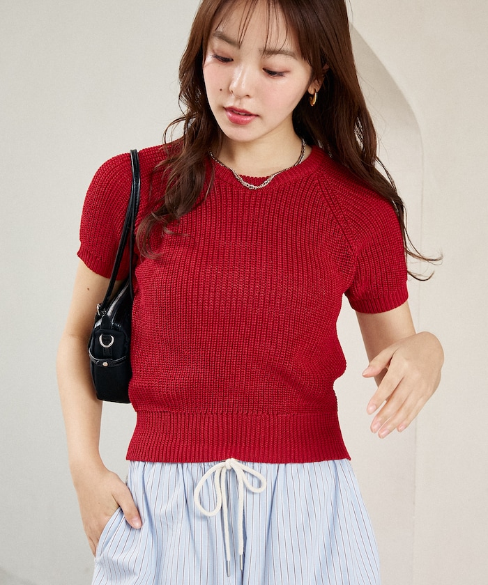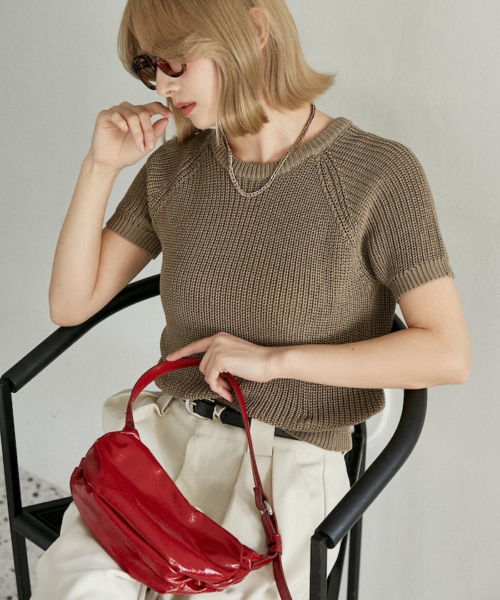 ●片畦編みの表情がシンプルなのに映えて、Tシャツ感覚で着てもきちんと見えが叶う1枚