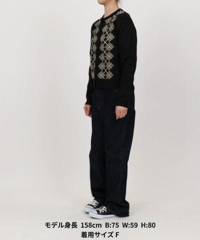 柄が目を引くアーガイルジャカードニットカーディガン