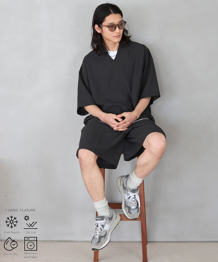 セットアップとして着るだけでバランスの取れたスタイリングが完成します。インナーのカットソーを活かしたレイヤードスタイルもおすすめ。シャツはワイドパンツやスラックスと合わせてリラックス感のあるコーディネートに、ショーツはポロシャツや襟付きカットソーと合わせればきれいめなカジュアルスタイルにも対応します。