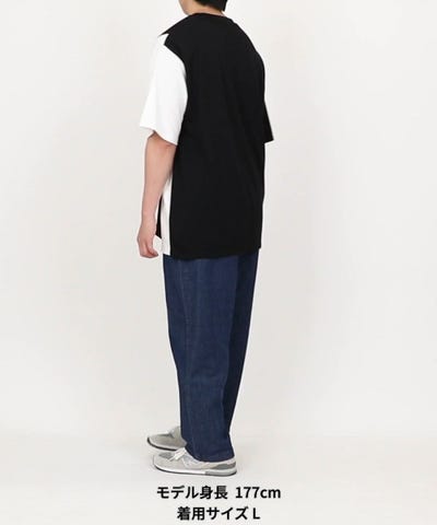 バイカラーの切り替えデザインが目を引くポンチ素材の半袖Tシャツ