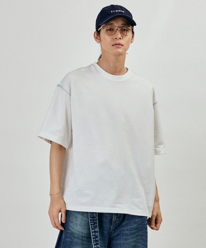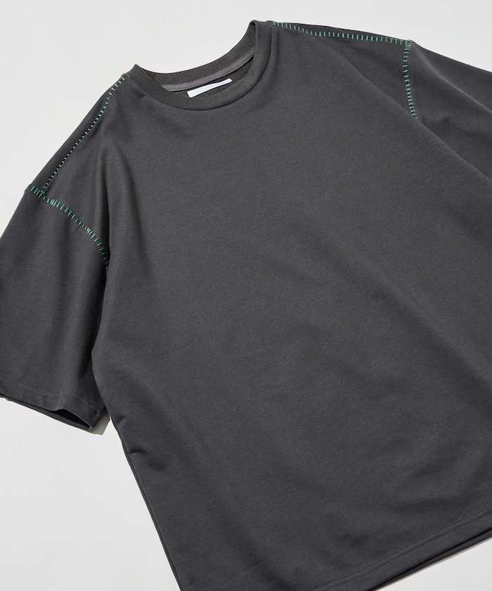 ●配色の刺繍糸が目を引くシンプルデザインの無地TEE
