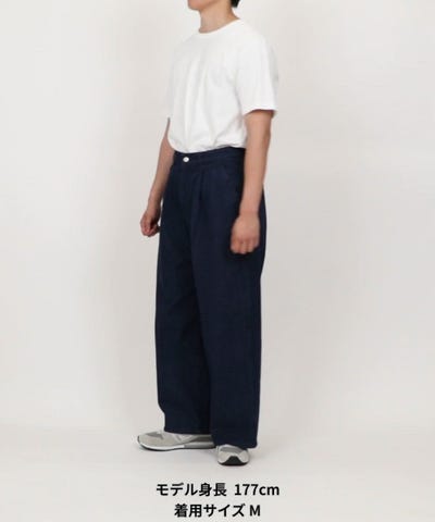 深さがある股上とワイドなストレートが特徴のデニムパンツ