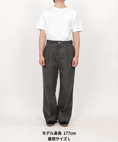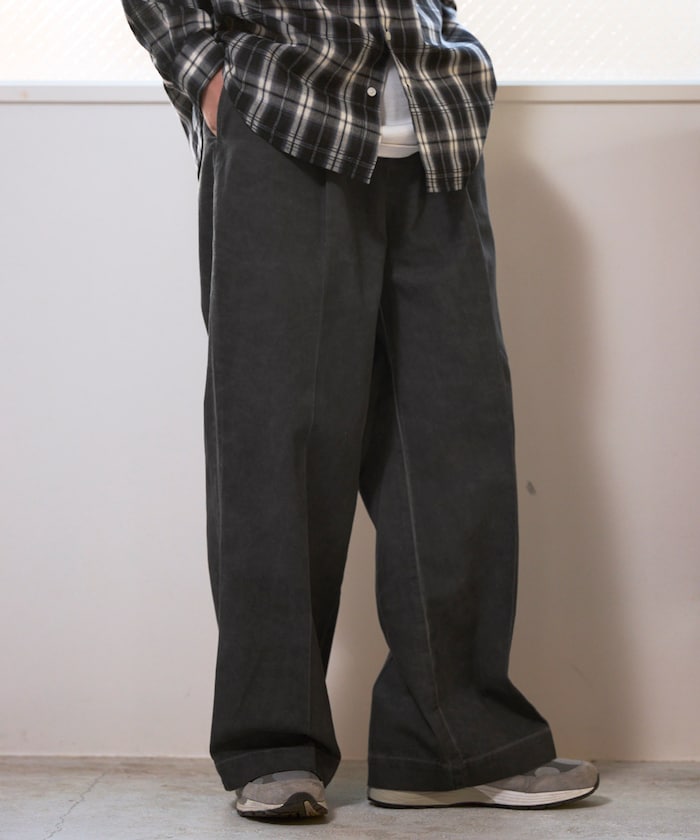 洗い加工が映えるワイドパンツ。