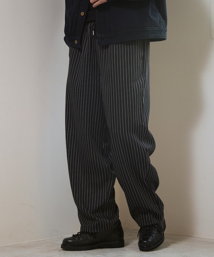 ●リラックス感と上品さを両立した、ストライプ柄のワイドイージーパンツ