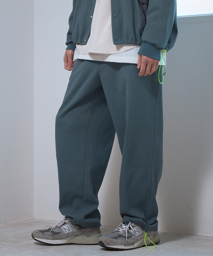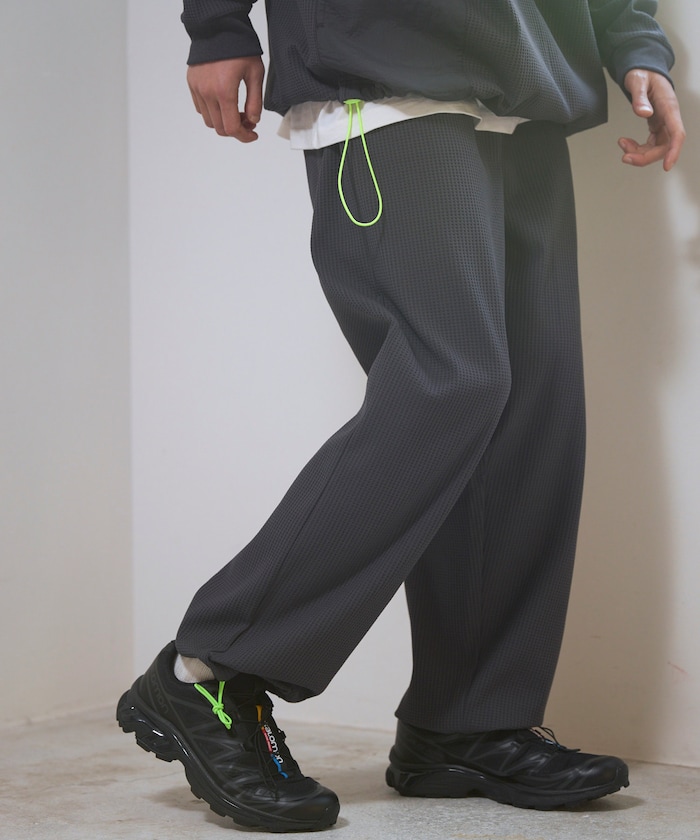 ●サーマル素材にナイロンポケットを組み合わせた、テック感のあるワイドイージーパンツ