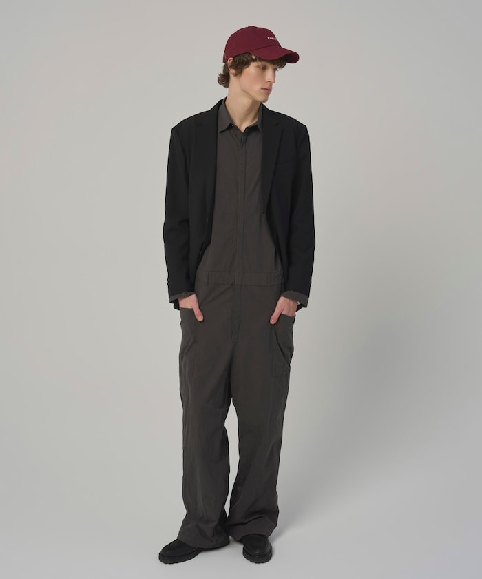 ●ユーロミリタリーをベースに、都会的でミニマルなバランスに再構築したシャツ地オールインワン