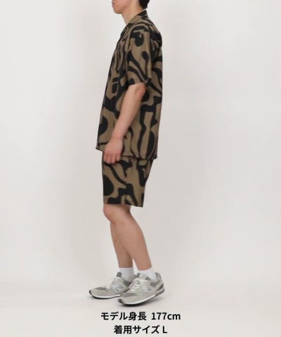 3306234400004:オーバーサイズ パターン オープンカラーショートスリーブシャツ
