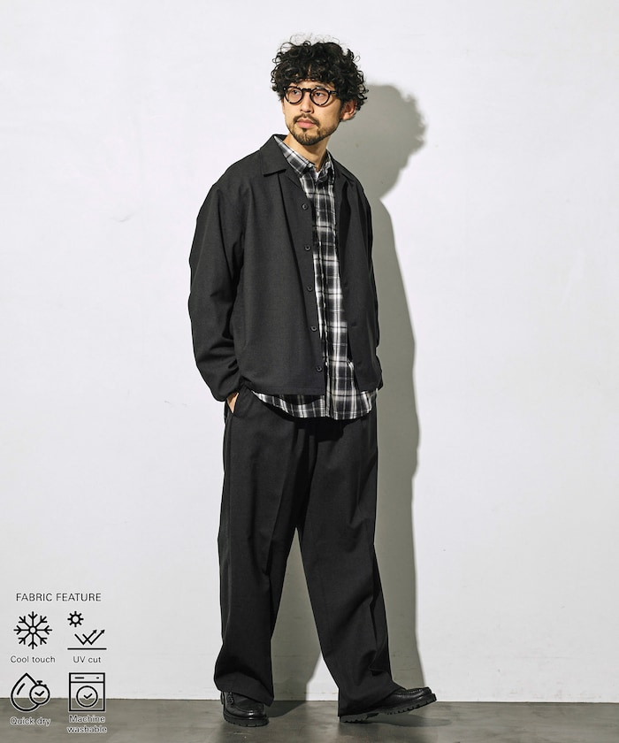 ●パンツはセンタープレス入りワイドシルエットで、きれいめ見えをキープ