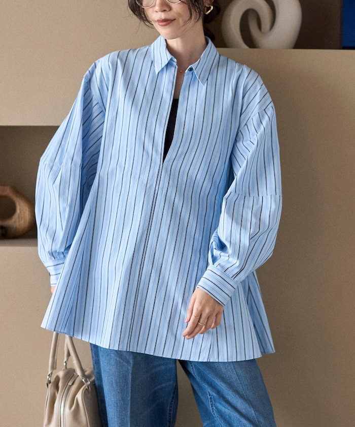 立体フォルムが映える、シワになりにくいスキッパーシャツ。