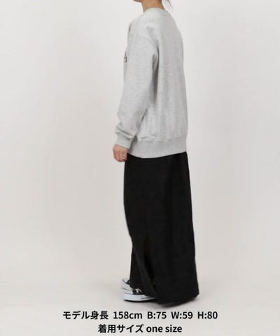 猫とロゴのプリントがポイントのスウェットは、一枚でも存在感があります。スカートと合わせると大人カジュアルな印象に、デニムやチノパンと合わせれば普段使いのカジュアルスタイルにぴったり。気温が下がったらシャツやタートルネックをインナーに重ねたレイヤードもおすすめです。足元はスニーカーでラフに、パンプスで少しきれいめにまとめるのも◎。