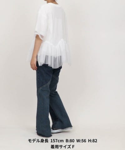 ●チュールの透け感とギャザーがポイントの1枚で主役になるデザインカットソー