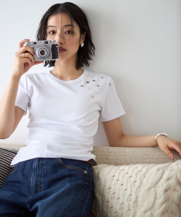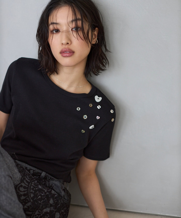 ●シールのように配置されたボタンディテールが、遊び心のあるアクセントに