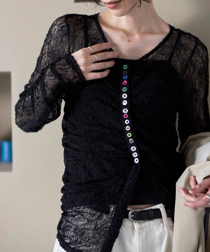 ●色と形の異なる貝釦を交互に配したディテールが、さりげないアクセントに