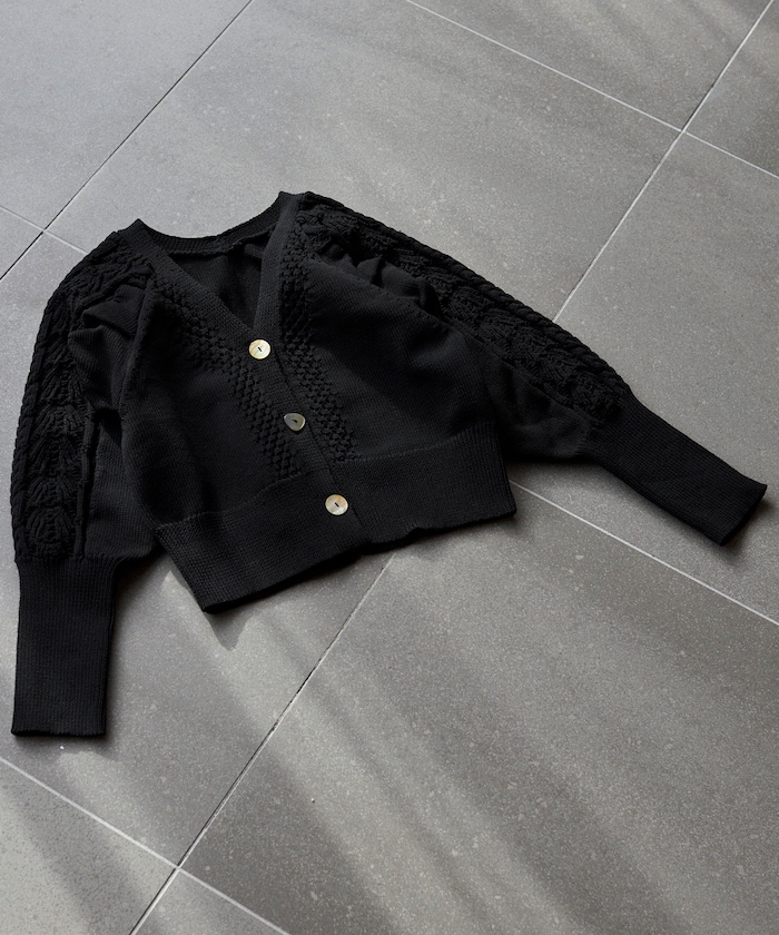 ●袖に施した立体的なケーブル柄×アイレット柄がデザインのアクセント