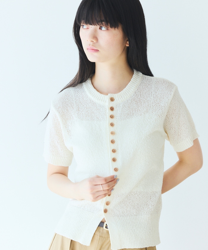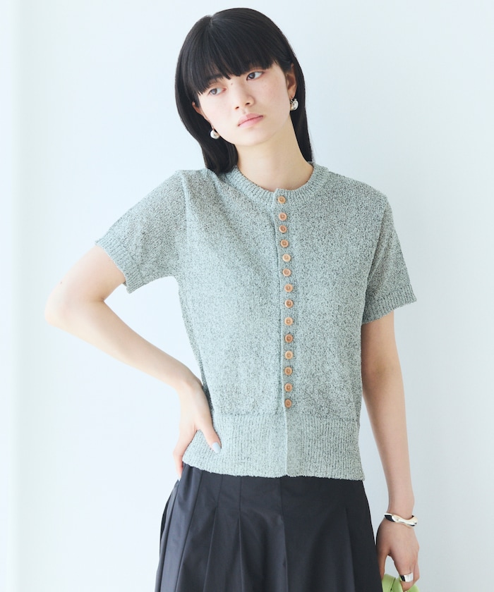 ●記事の表情とデザイン、バランスの良いシルエットが共存するニットソーカーディガン