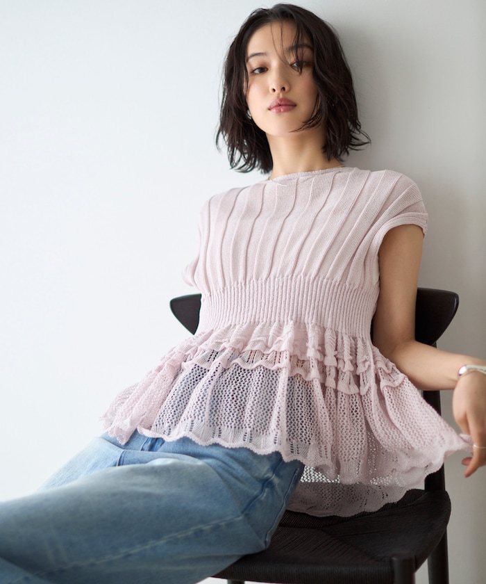 ワンピースの上にレイヤードするなど、立体ペプラムシルエットを活かしたスタイリングも楽しめます。
