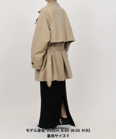 秋口にはライトニットやカットソーに合わせてさらりと羽織り、女性らしいAラインシルエットを活かしたフレアスカートやワイドパンツとのコーディネートがおすすめです。冬にはインナーダウンや厚手ニットを中に着込み、ボリュームのあるボトムスと合わせてもバランス良く着こなせます。ウエストをベルトでマークすれば、きちんと感のある通勤スタイルにも対応可能です。衿を立てて衿タブを使用すれば、よりモード感のある印象に仕上がります。