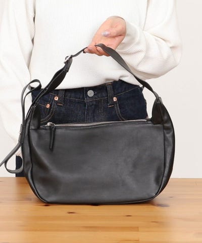 シャツやジャケットを合わせたきれいめスタイルには肩掛けで上品に、Tシャツやスウェットなどのカジュアルスタイルには少し長めに調節してラフな印象に。パンツ・ワンピース問わず合わせやすく、スタイリングに自然と馴染む万能バッグです。