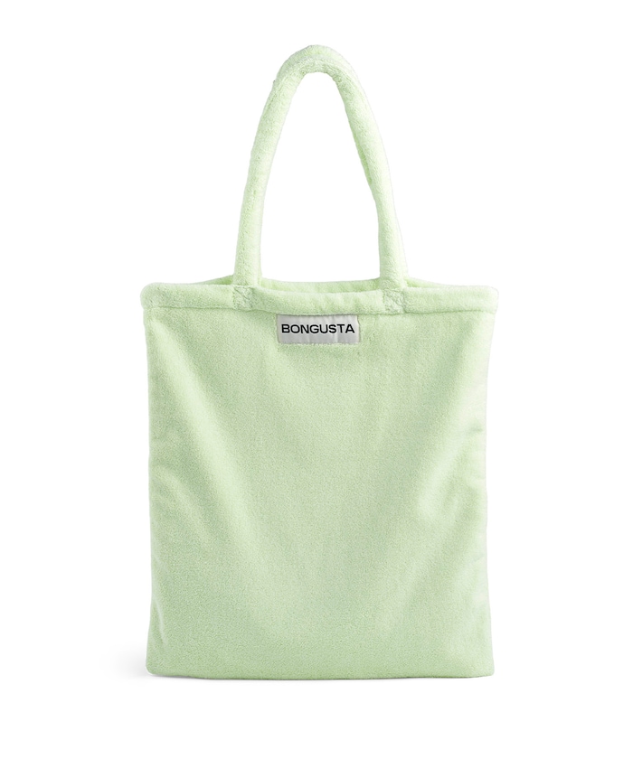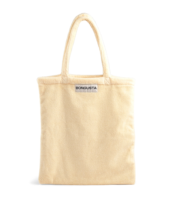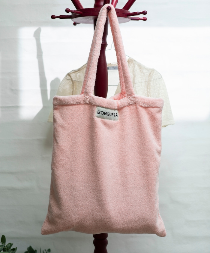 ソフトなテリーコットン素材にストライプのモチーフをあしらったトートバッグ