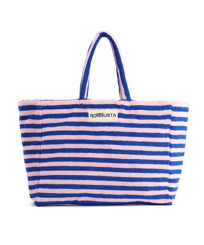 ソフトなテリーコットン素材にストライプのモチーフをあしらったトートバッグ