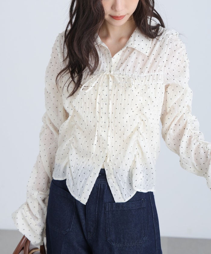 袖口カフスに共地リボンを通したドロストデザインがポイント。