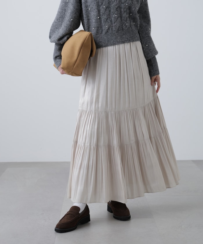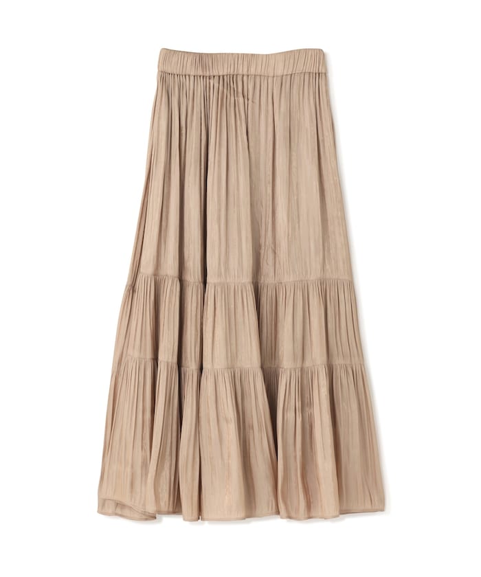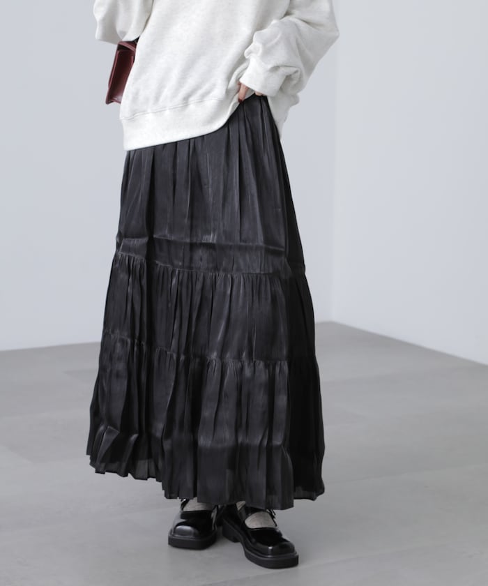 シャイニーな光沢感が可愛らしいサテンティアードスカート。