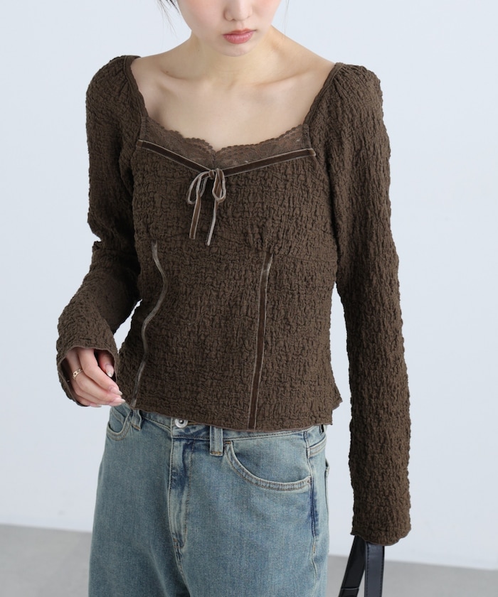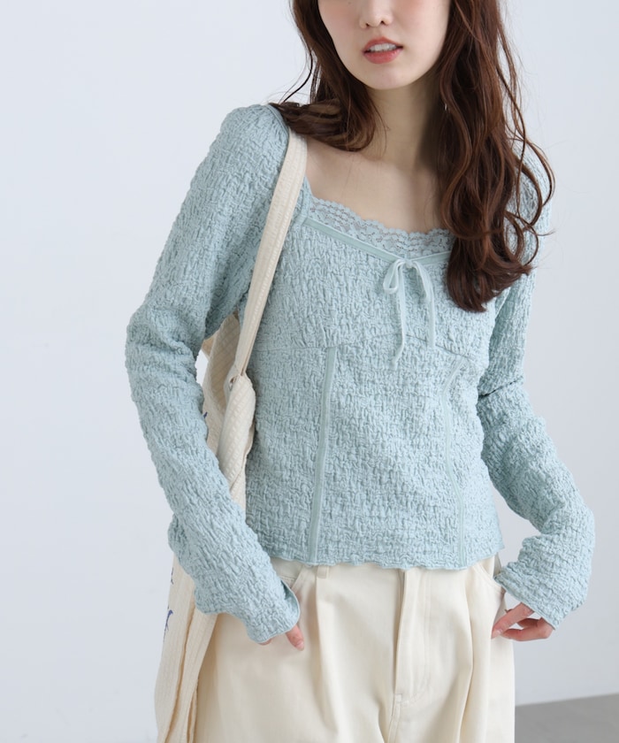 ポコポコとした表面感が可愛いカットジャガード素材を使用したカットソー。