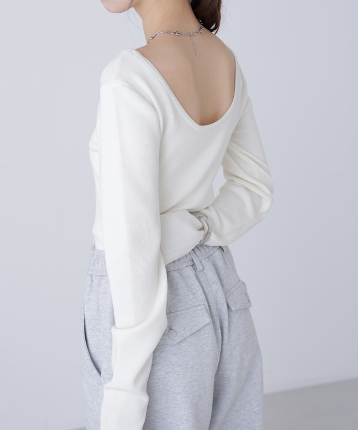 【着回し◎】一枚でも着映える、バックオープンデザインのコンパクトニット。